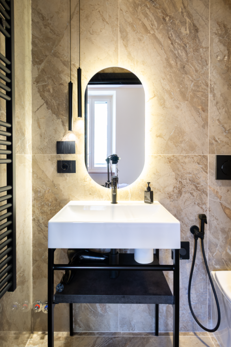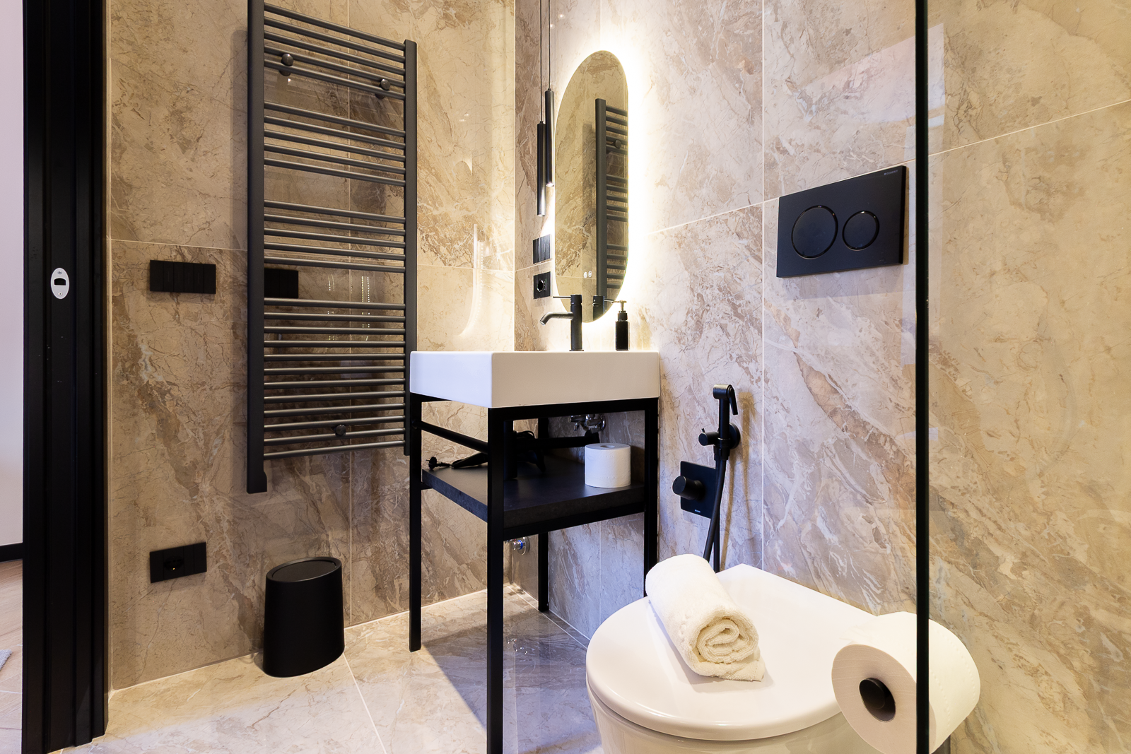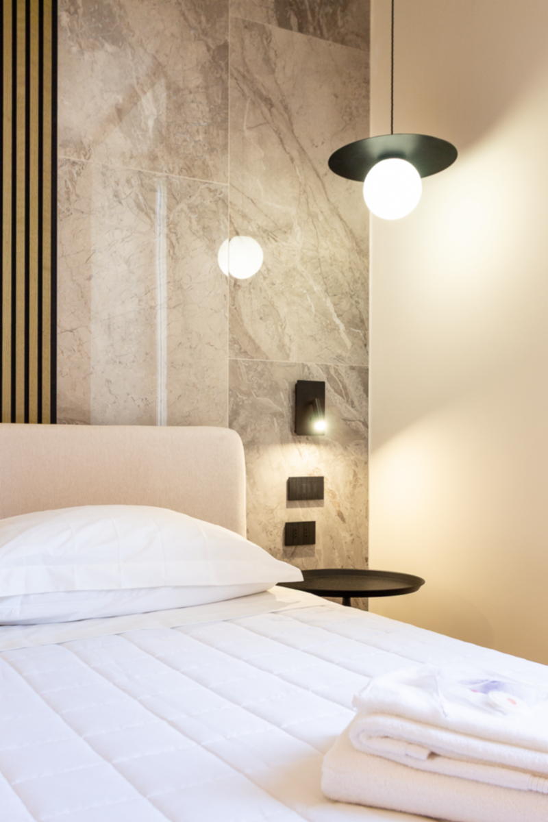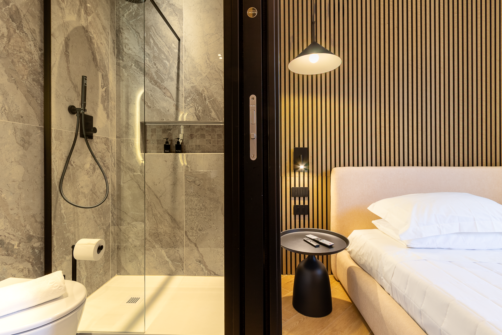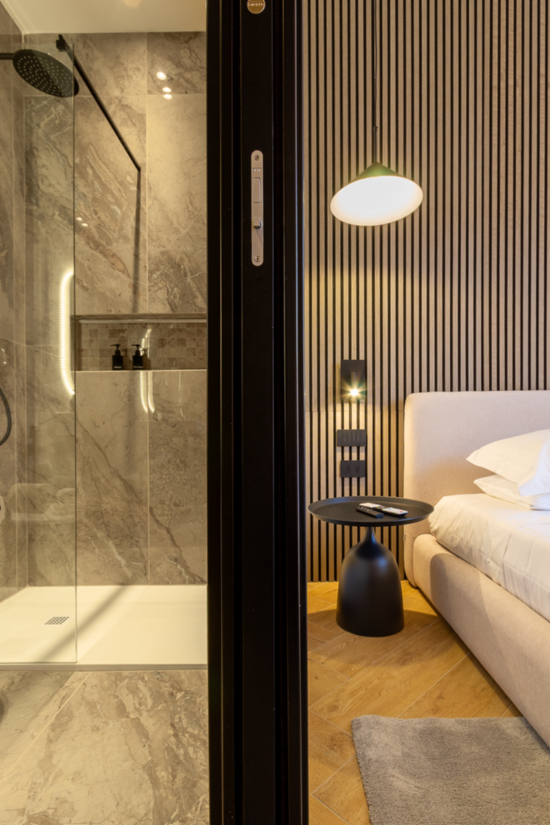 Let yourself be wrapped in soft lighting, harmonious tones, and the peaceful atmosphere that greets you the moment you enter. The designer heated towel rail not only adds a modern touch, but also provides a soothing warmth — perfect for moments of pure relaxation after exploring the Eternal City.
